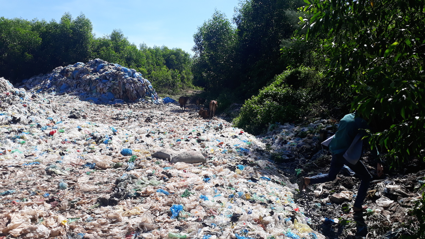 Ngay gần với cổng ra vào của nhà máy này cũng có một đống rác lớn |
